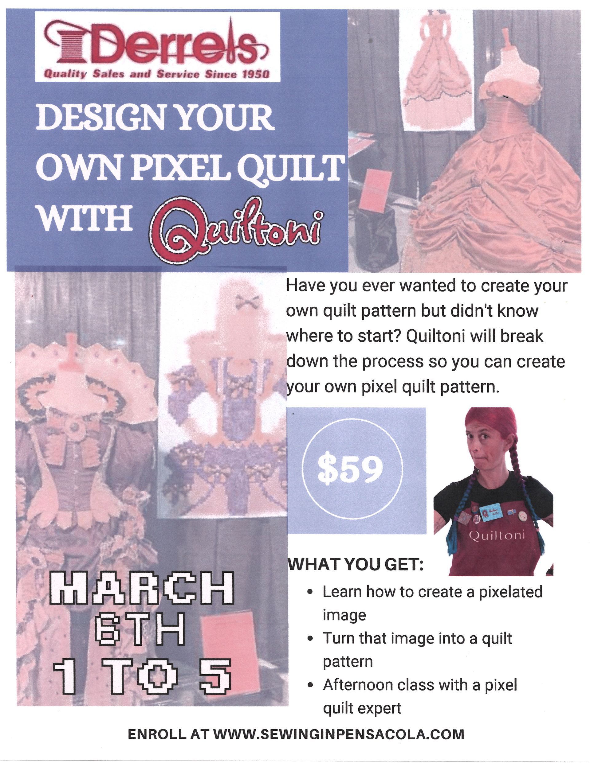 At Derrel's, we provide quality service and repair for sewing machines, new and used machines, classes, workbook tutorial and unique fabric and patterns. No matter if you're just beginning or experienced, Derrel's of Pensacola has you covered. Contact us today or visit us in store today.